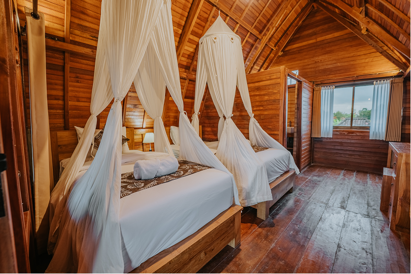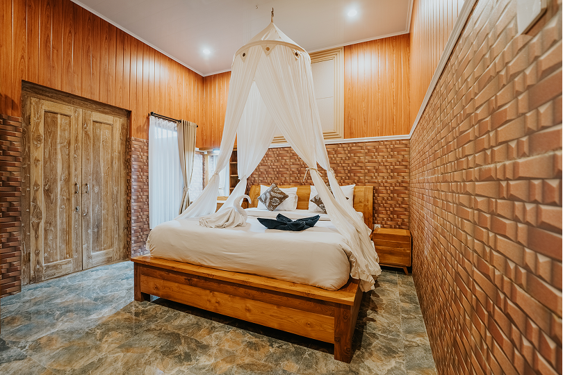 With its Joglo-style design enriched with Balinese elements, Widari Villas creates a strong traditional yet elegant ambiance. The guest area overlooks the rice fields, where the gentle breeze adds comfort and serenity—perfect for relaxation and a memorable stay in Ubud.
